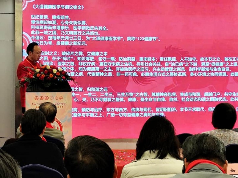作为节日的灵魂文件,《大道健康医学节倡议铭文》与《大道健康医学宣言》由发起人苗宸铭先生庄严宣读。铭文以文言文写就,立意高远,呼吁打破“碎片化”困局,确立“整体观、平衡观、整合观”,并设计“学术引领、公众教育、社群共建、体系推动”四维一体的行动纲领。宣言则进一步以现代语言,阐明了“大道至和,生生不息”的愿景,确立了整体性、整合性、科学性等七大核心原则。两篇文献一古一今,一文一白,深刻揭示了“123”的数字密码:“1”象征健康本源与整体之元,“2”代表防治并重、中西对话的动态平衡,“3”则寓意海纳百川、化生万法的整合实践。这一设计,使节日超越了普通纪念日,升华为一种融合东方哲学与普世健康追求的文化符号。 石定坤博士关于“奇门遁甲与三好人生”的分享,以及晚宴中的中道禅舞、福字书法等环节,均从不同维度展现了身心同调、性命双修的传统养生文化在当代健康管理体系中的独特价值,实现了文化传承与产业创新的诗意共鸣。